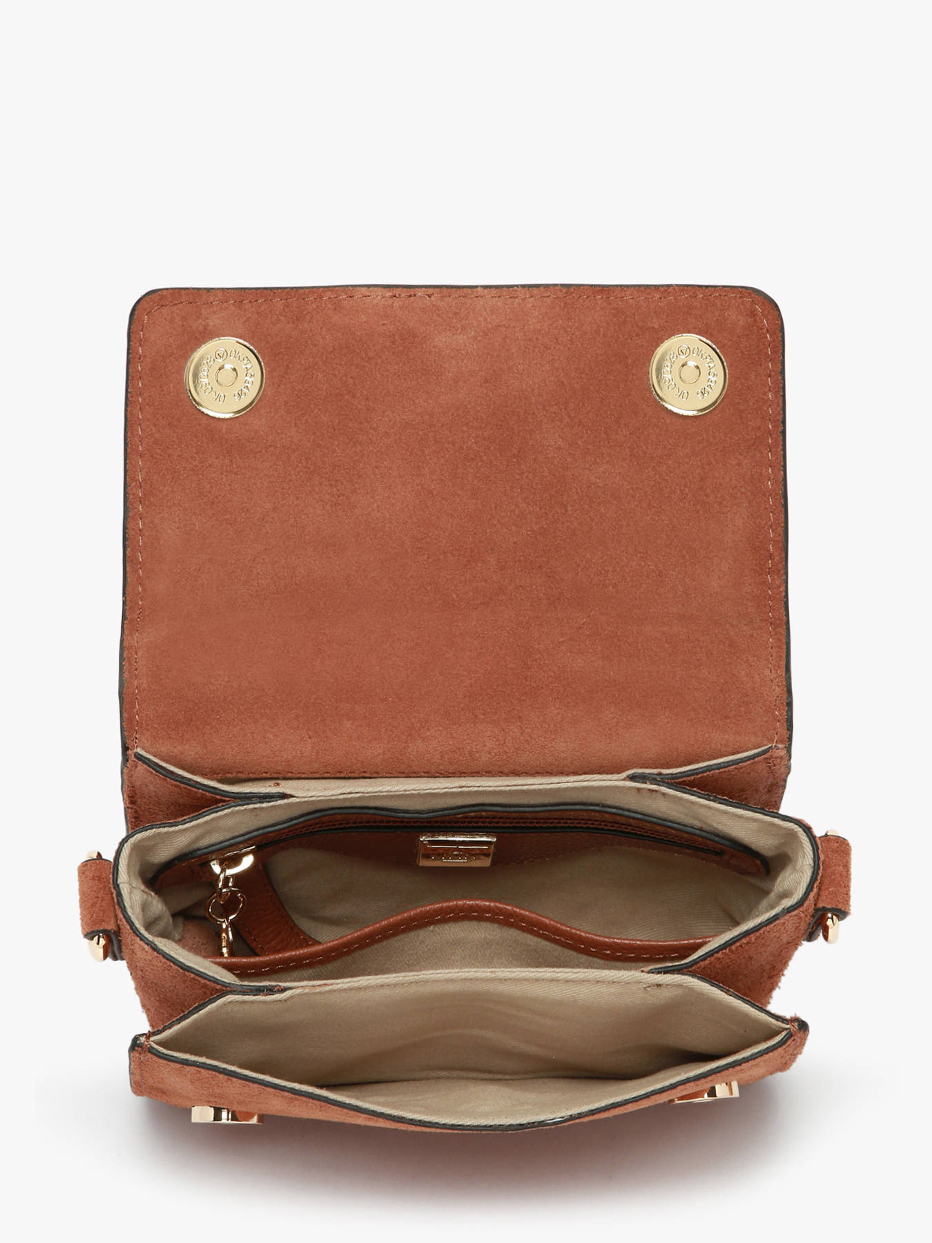 The ETRIER crossbody bag from the ALTESSE SUEDE line is available in its smallest size, the XS model. This new iconic line is crafted from velvety leather with a soft touch, offering a warm and elegant look that stays true to the ""Highlander Cowboy"" spirit. Compact yet refined, this model closes with a magnetic flap enhanced by the gold-tone Etrier emblem. The back of the bag is made of grained leather for better durability. It also features a back pocket, a small handle for handheld carrying, as well as an adjustable and removable strap for shoulder or crossbody wear. The perfect accessory to elevate your seasonal looks.
